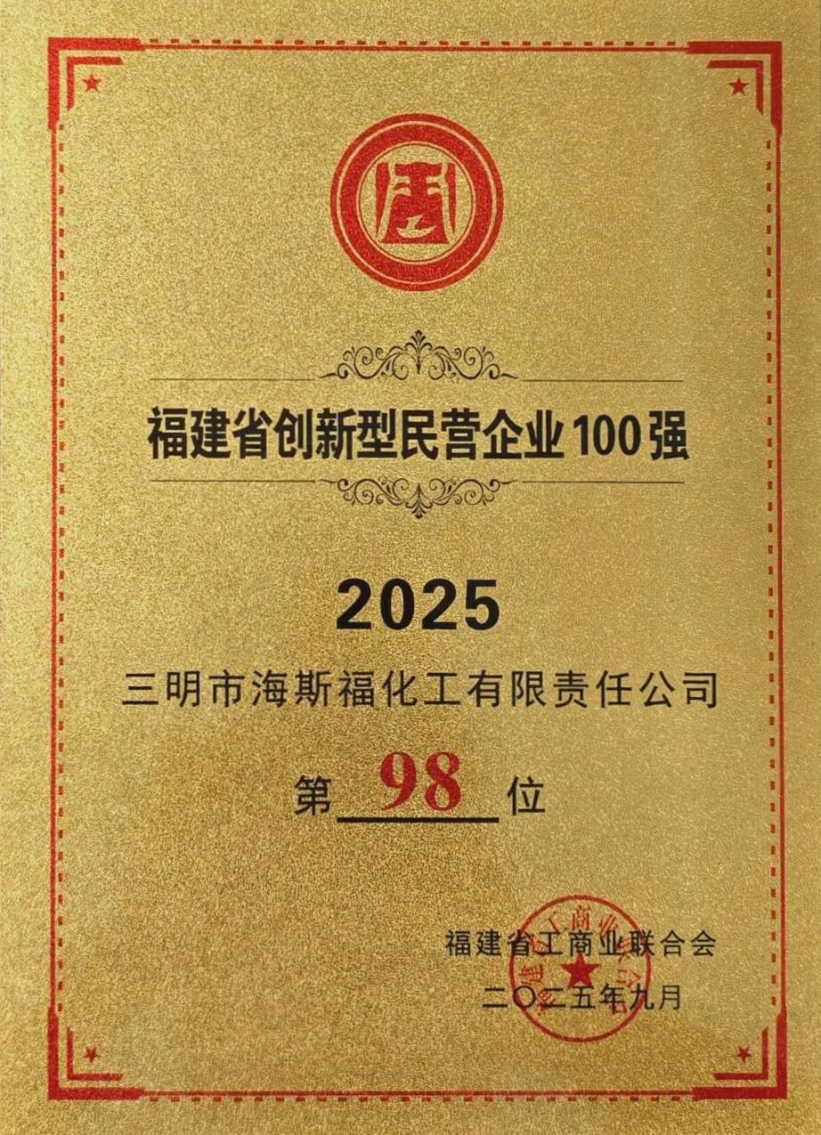 新征程扬帆起航,新使命重任在肩。海斯福将以本次入围“2025福建省创新型民营企业100强”为契机,以科技创新为锚点,聚焦实业、做精主业金岭速配,进一步延伸产业链、开发新产品,力求以更具竞争力的创新成果,为福建省经济高质量发展贡献更多力量,用氟化学品和氟材料创造美好未来!