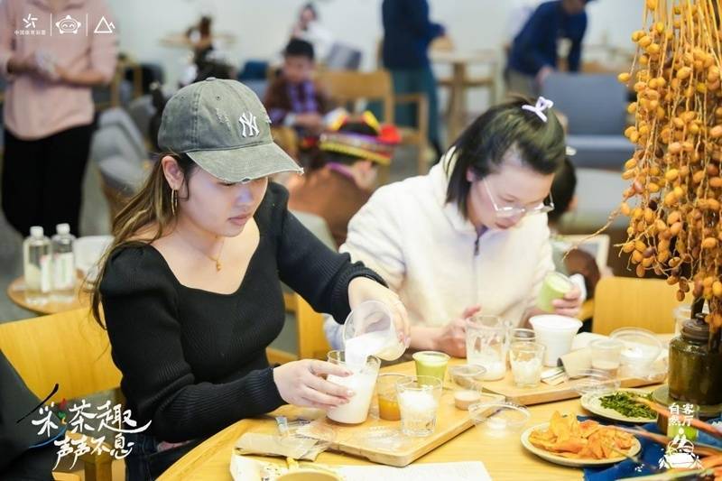 特意前来参与活动的市民李丽丽,也被现场氛围深深打动。听到侗族歌曲时,她忍不住录下视频留念:“第一次近距离感受侗族大歌,无伴奏的和声特别干净,配上小朋友的声音,一下子就被打动了。”除了听觉盛宴,李丽丽还在门店体验区参与了联名饮品的简易制作:“工作人员教我们把煮软的香禾糯与茶汤融合,制作过程中才知道,香禾糯是从黎平来的。喝着自己做的茶,感觉这杯茶不止有味道,更有意义。”